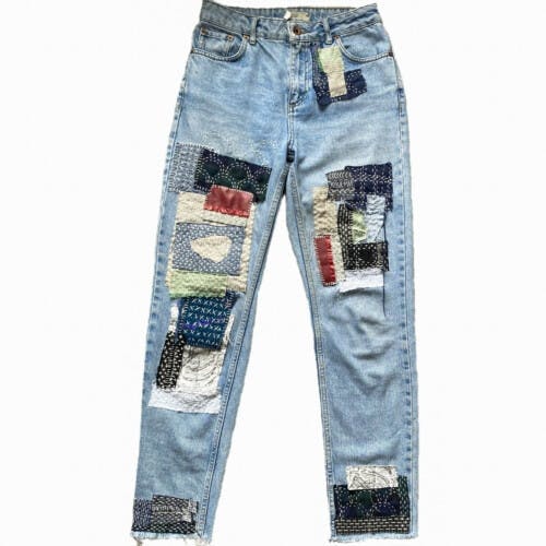 Hannah’s sample jeans, patched using Boro stitch