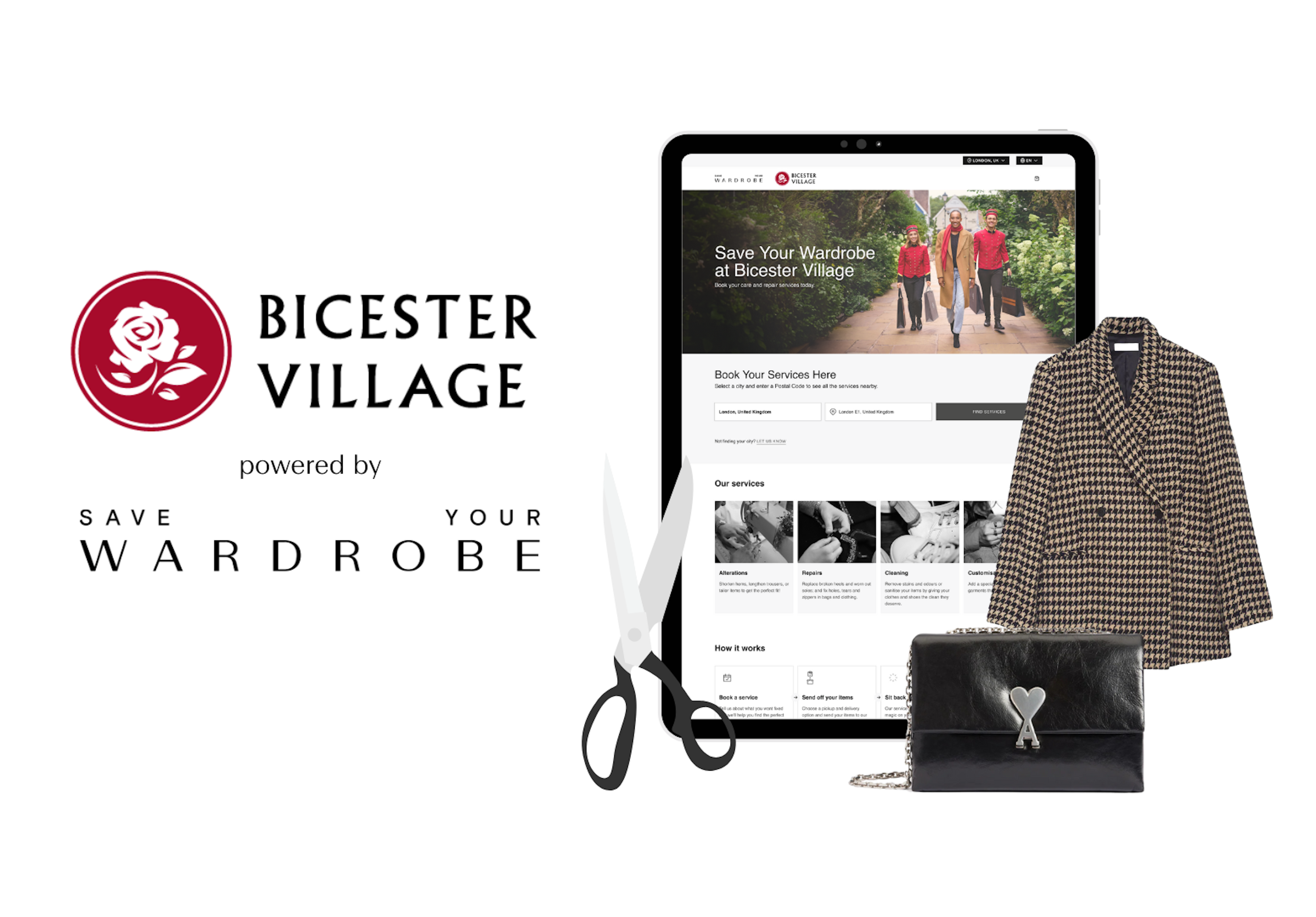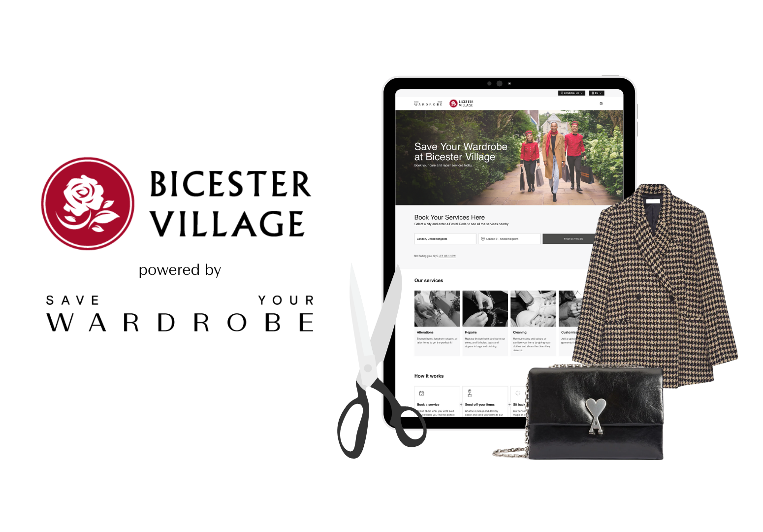 London, UK – Save Your Wardrobe is thrilled to announce an exclusive partnership with Bicester Village, the Bicester Collection’s founding Village.The partnership will see Save Your Wardrobe power a comprehensive digital experience leveraging its own advanced aftercare platform. Save Your Wardrobe's customised platform features integrated automated logistics, live tracking, operational management, fluid customer communication and live data reporting- guaranteeing an efficient repair experience from booking to completion. Bicester Village Members can conveniently access a range of services for the repair, alteration, and cleaning of clothing, bags, and shoes through the platform.